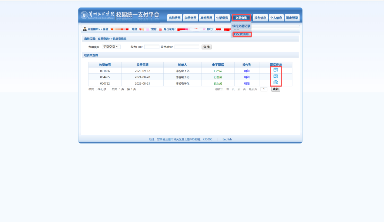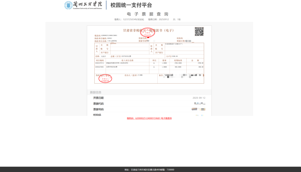 我校学费、住宿费等行政事业性收费全部通过学校“校园统一支付平台”缴入国库,缴费完成后由省财政厅统一开具电子发票,发票获取方式如下: