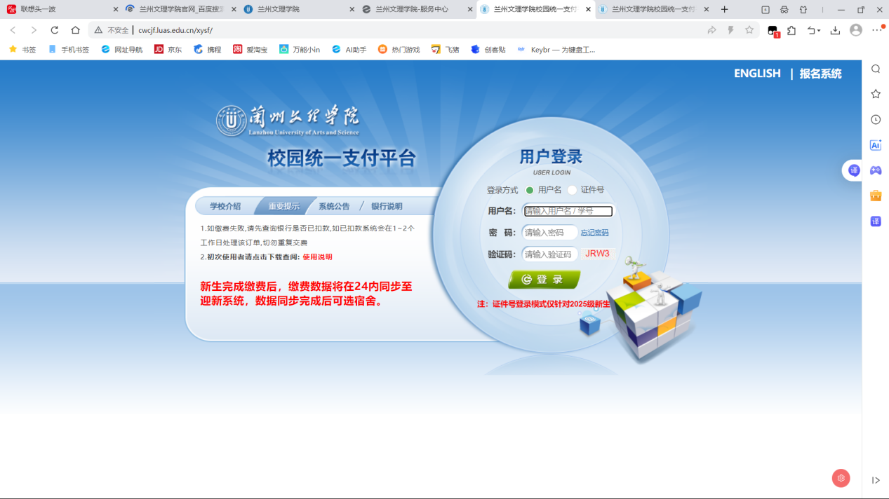1.通过PC端浏览器登录:https://cwcjf.luas.edu.cn/xysf/login.aspx?local=zh-cn